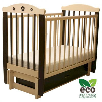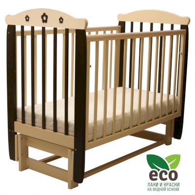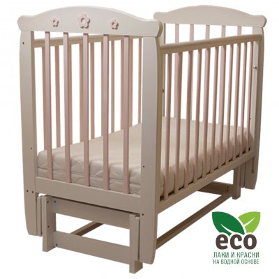 Кроватка "Соня 05" имеет механизм качания продольный маятник. Механизм качания фиксируется. Возможен вариант кровати с ящиком.