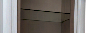 Стекло: полки-прозрачные, витрины-бронзовое