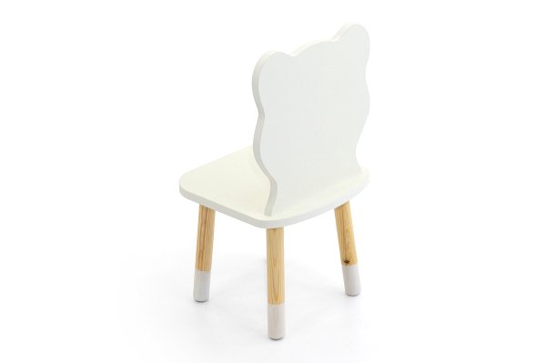 Края спинки и сиденья закруглены и покрыты кромкой ПВХ для безопасности ребёнка. Ножки стула тщательно отшлифованы и покрыты лаком на водной основе. Нижняя часть ножек окрашены белой эмалью на водной основе.