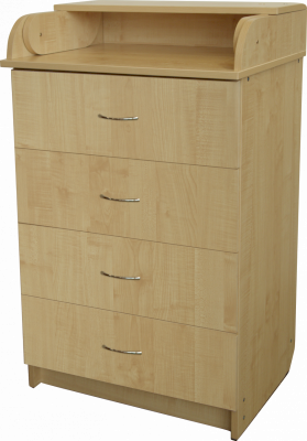 По вашему желанию верхняя крышка комода откидывается и предоставляет большую поверхность для пеленания младенца и массажа. Используемые в производстве комода материалы отличаются высоким качеством.