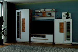 Отсутствует привычная лицевая фурнитуры в виде ручек. Функцию ручки выполняет профиль МДФ, окутанный в пленку ПВХ, собственного производства. Фигурная фрезеровка на фасадах повторяет контур ручки, что придает дополнительную фактуру и рельеф внешнему виду модуля.