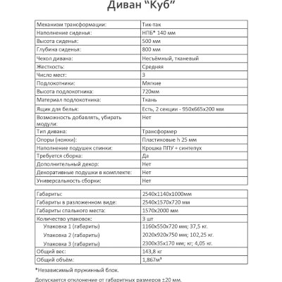 Габариты (ШхГхВ): 2540х1140х1000 мм