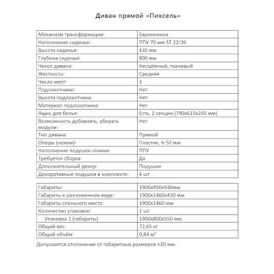 Диван Пиксель (Аквилон) – товар доступен к покупке в интернет-магазине majkopskiy-dommebeli.ru. Цена – 30 317 руб. без учета доставки. Стоимость дополнительных услуг и сроки получения мебели уточняйте у менеджера. Возможен безналичный расчет, оплата по карте на сайте.