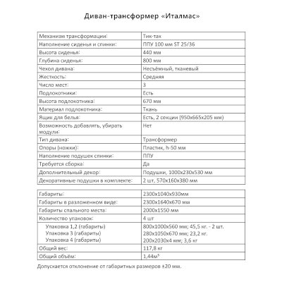 Диван-трансформер Италмас (Аквилон) – товар доступен к покупке в интернет-магазине majkopskiy-dommebeli.ru. Цена – 73 394 руб. без учета доставки. Стоимость дополнительных услуг и сроки получения мебели уточняйте у менеджера. Возможен безналичный расчет, оплата по карте на сайте.