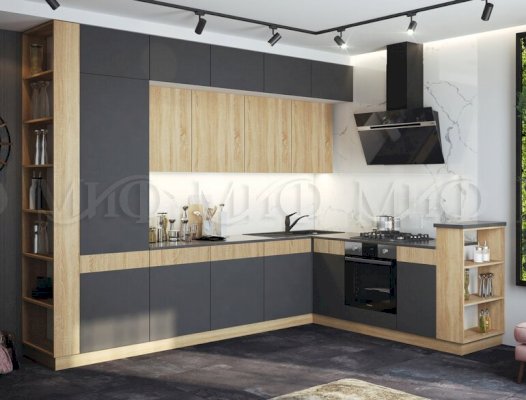 Элегантная кухня «Техно 5» — настоящее украшение для любой квартиры. Такая кухня наполнена теплом, уютом и отличается своими эстетическими достоинствами. Лаконичный дизайн кухни в стиле лофт подходит для современных людей, любящих порядок.