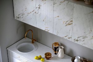 Модульная кухня Оливия Мрамор золото/Белый глянец холодный (Миф)